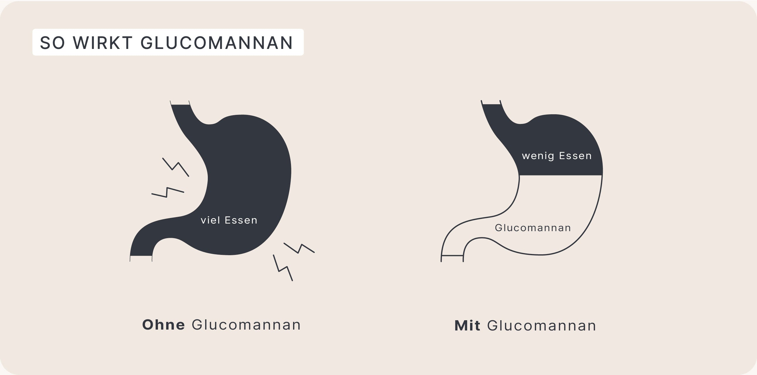 Unsere Abnehm-Kur funktioniert ganz einfach: Eine Woche lang löst Du vor jeder Hauptmahlzeit den Inhalt eines kleinen Sticks in Wasser auf und trinkst den Mix. In dem Pulver steckt neben Vitaminen und Mineralien der pflanzliche Ballaststoff Glucomannan. Im Magen angekommen, absorbiert die Konjakwurzel Wasser und quillt so stark auf, dass nur noch wenig Platz für Essen bleibt. Dadurch bekommst Du Deinen Hunger unter Kontrolle und nimmst weniger Kalorien zu Dir. Glucomannan unterstützt nachweislich die Gewichtsreduktion.