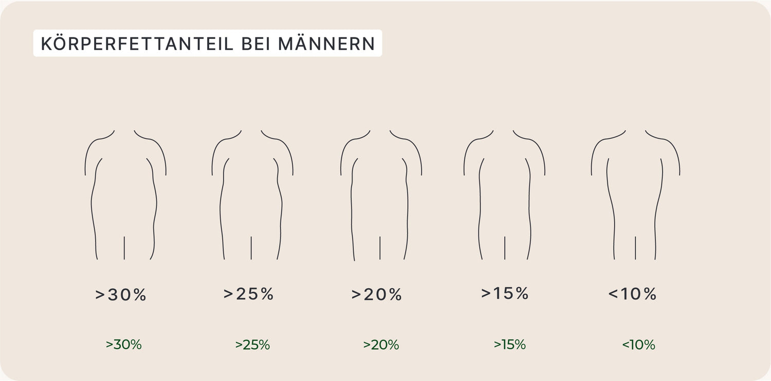 Der Körperfettanteil gibt an, wieviel Prozent des gesamten Körpergewichts auf Fettmasse zurückzuführen ist.