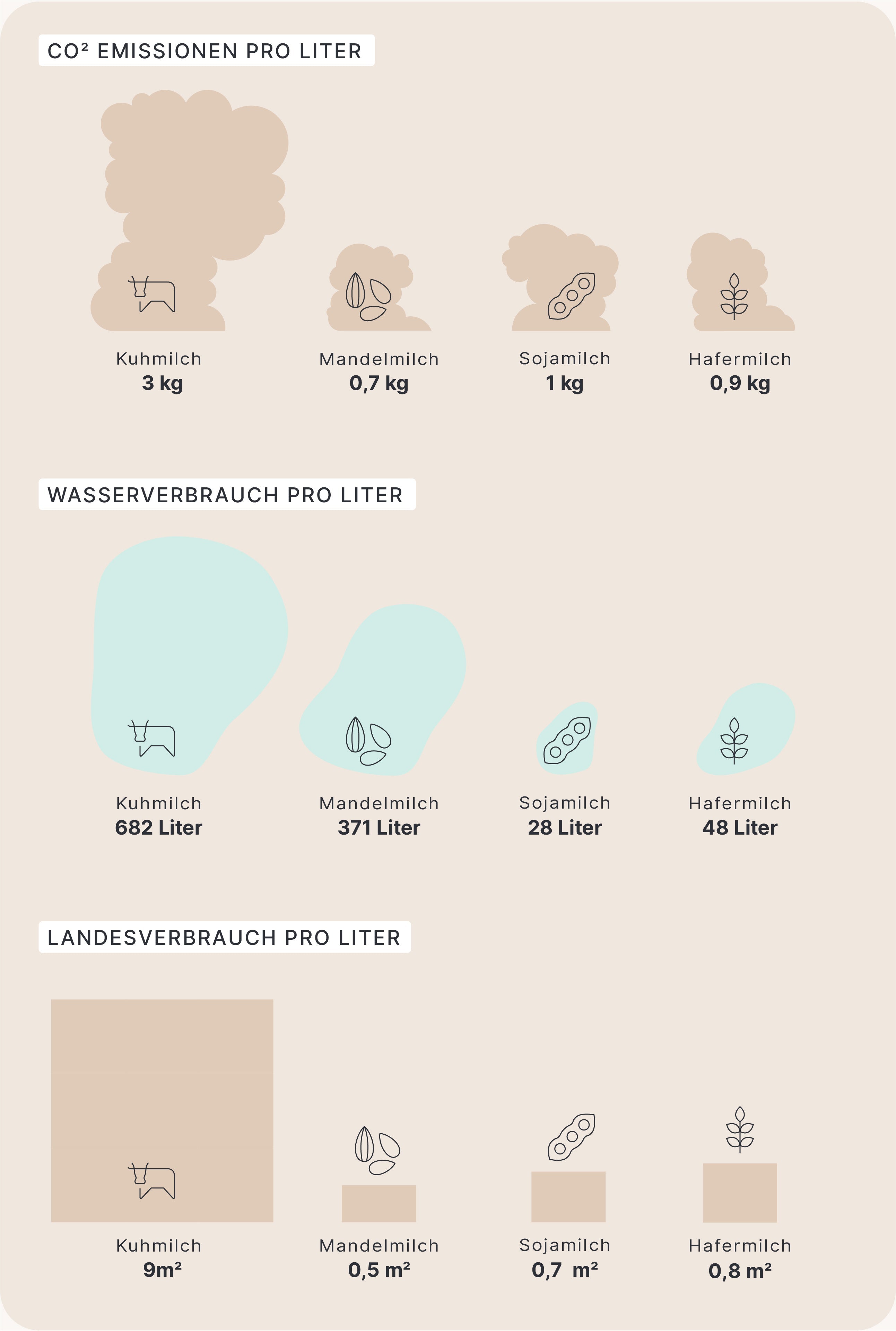 Der Vergleich zeigt: In Bezug auf die Zusammensetzung und Nährstoffdichte kommt an Kuhmilch keiner ran. Auch geschmacklich überzeugt sie, aber sie ist halt von der Kuh. Alle, für die das aus gesundheitlichen oder ideellen Gründen nicht infrage kommt, müssen irgendwo Abstriche machen. Gewöhnungsbedürftiger Geschmack, wenig Nährstoffe, schlechte Öko-Bilanz – irgendwas ist immer.