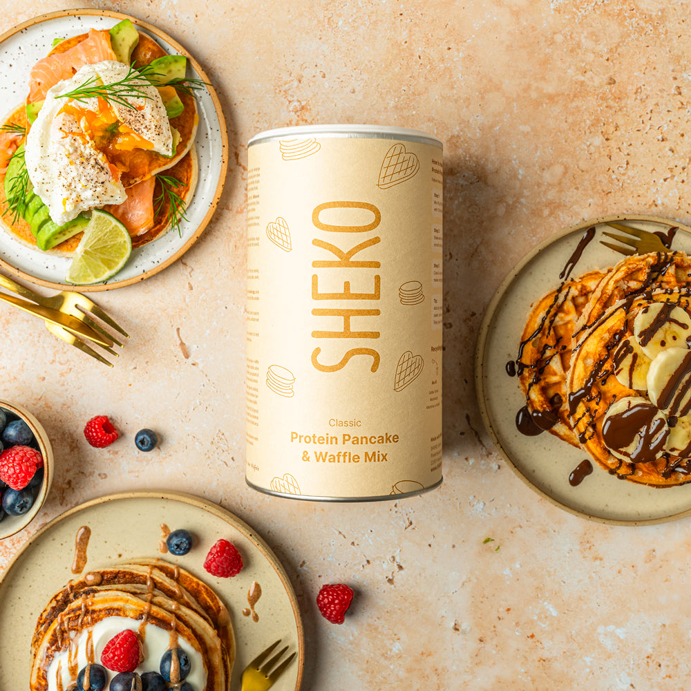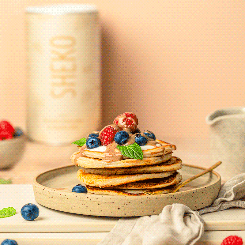 Unsere neue Protein Pancake & Waffel Backmischung vereint alles, was Du an SHEKO liebst: natürlichen Geschmack, clevere Nährwerte und maximal einfache Anwendung. Mit 25 g Protein und 5 g Ballaststoffen pro Portion sättigt sie zuverlässig.