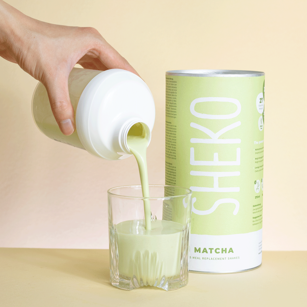 Fülle zuerst 275 ml fettarme Milch in den Shaker und gib dann das Pulver (18 g) hinzu. So bilden sich am Boden keine Klümpchen. Fest zuschrauben, kräftig schütteln und genießen!