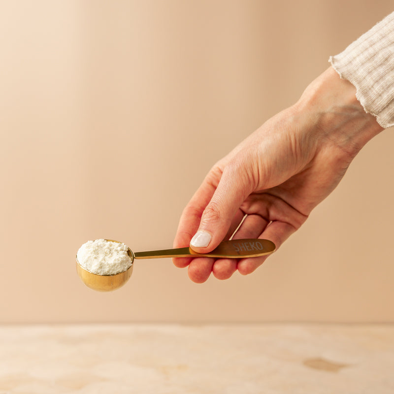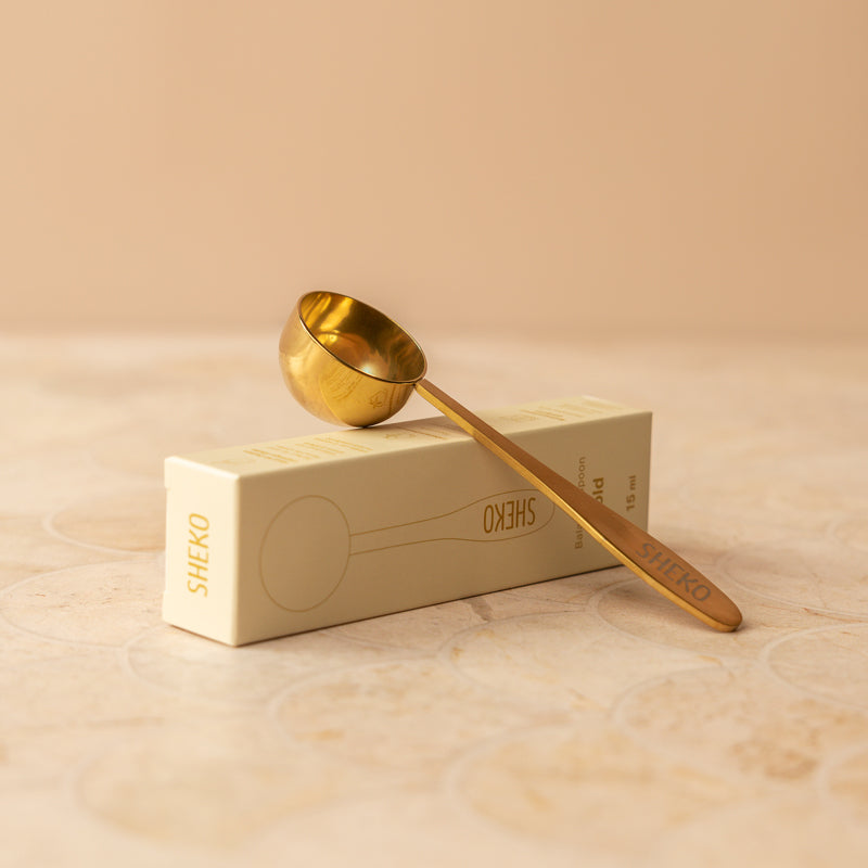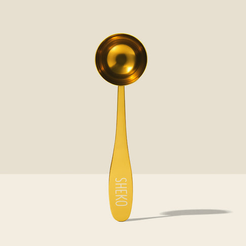 Unser goldener Messlöffel aus Edelstahl ist nicht nur praktisch sondern auch hübsch anzusehen. Lange wurde er sich gewünscht, jetzt ist er endlich da: Ein Löffel, der so schön ist, dass er auch Mal in der Küche liegen bleiben darf und ganz nebenbei die Shakezubereitung noch einfacher macht.